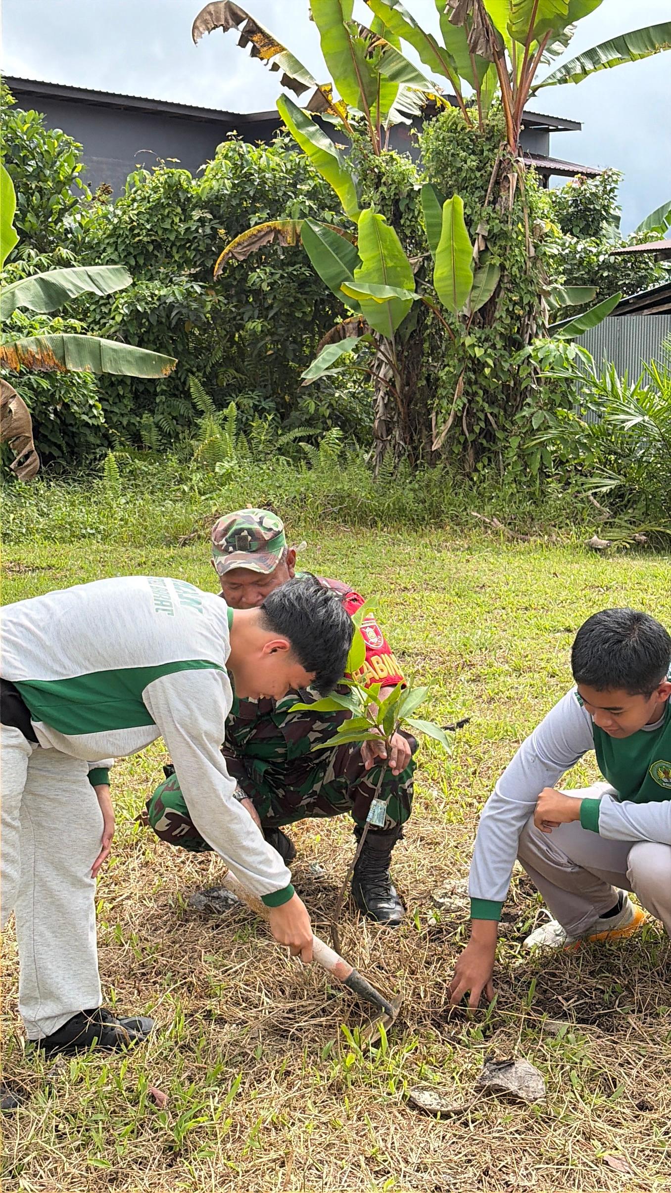 Kegiatan ini berlangsung dengan penuh semangat kebersamaan di lingkungan madrasah. Para siswa, guru, serta unsur TNI, Polri, dan pemerintah setempat bahu-membahu menanam pohon sebagai bentuk aksi nyata menjaga kelestarian alam.