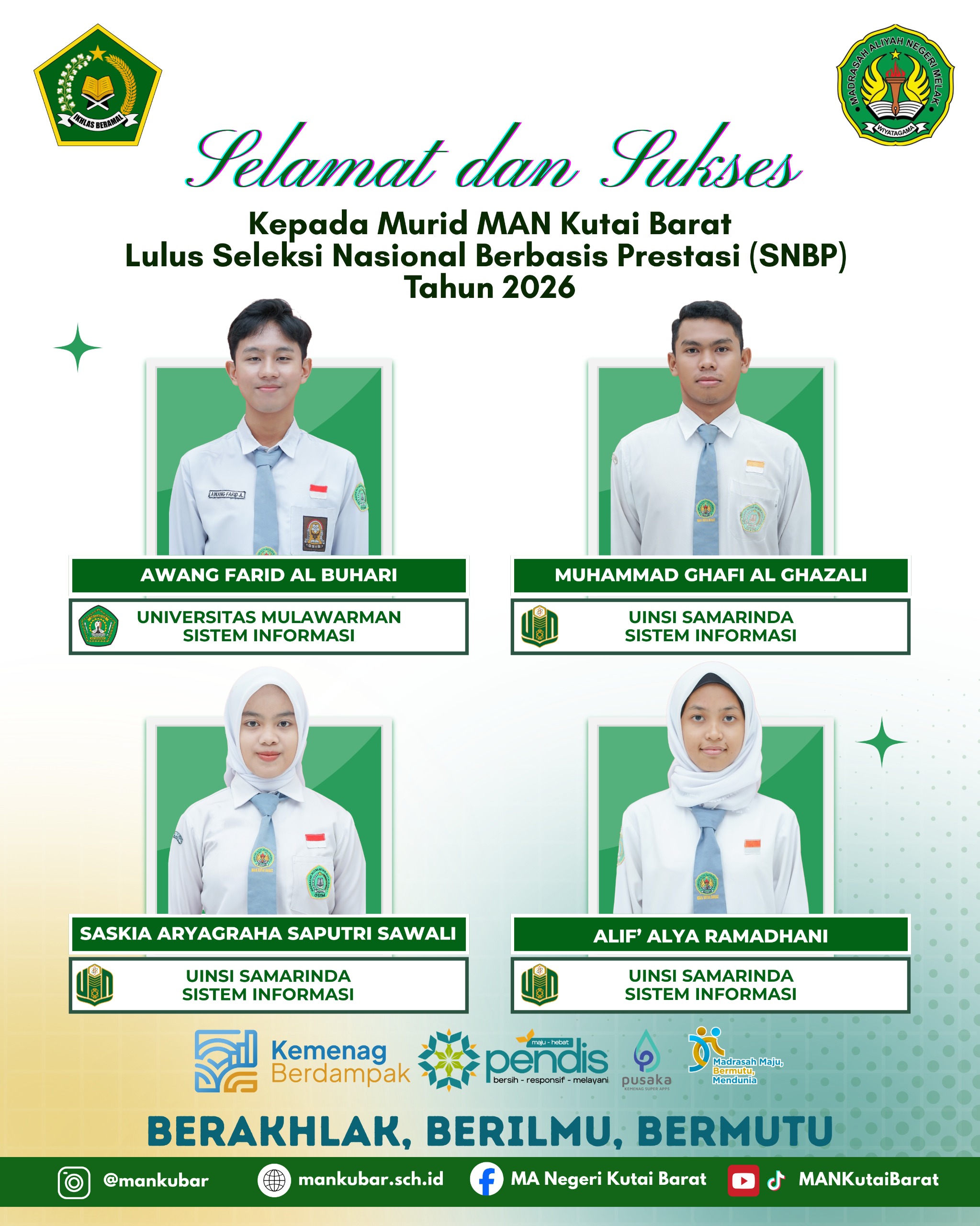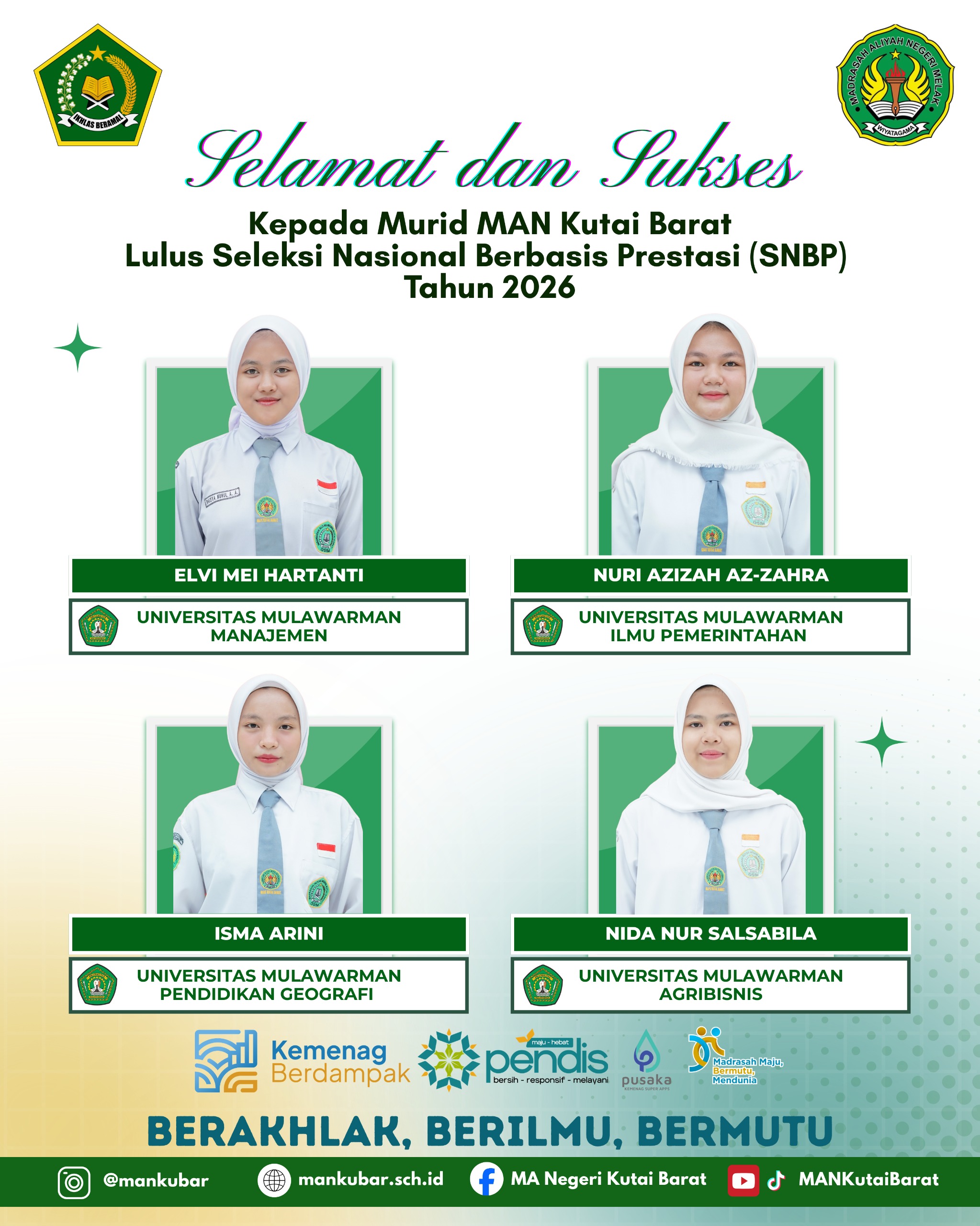 Kutai Barat – Kabar membanggakan datang dari Madrasah Aliyah Negeri (MAN) Kutai Barat. Sejumlah peserta didik berhasil lulus Seleksi Nasional Berdasarkan Prestasi (SNBP) Tahun 2026 dan diterima di berbagai perguruan tinggi negeri ternama di Kalimantan Timur.